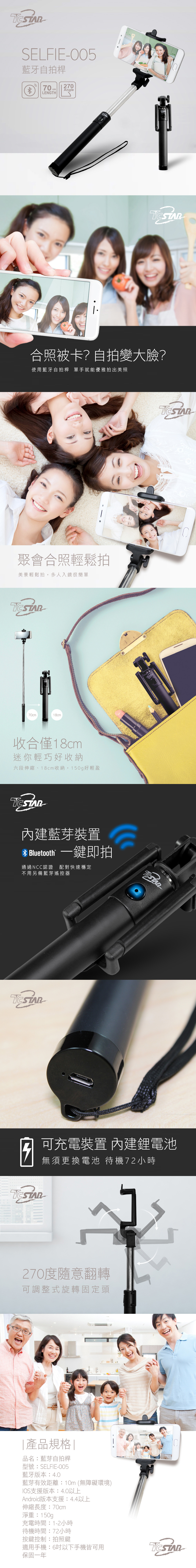 待機時間 3天 包裝內容物 自拍桿 / 充電線