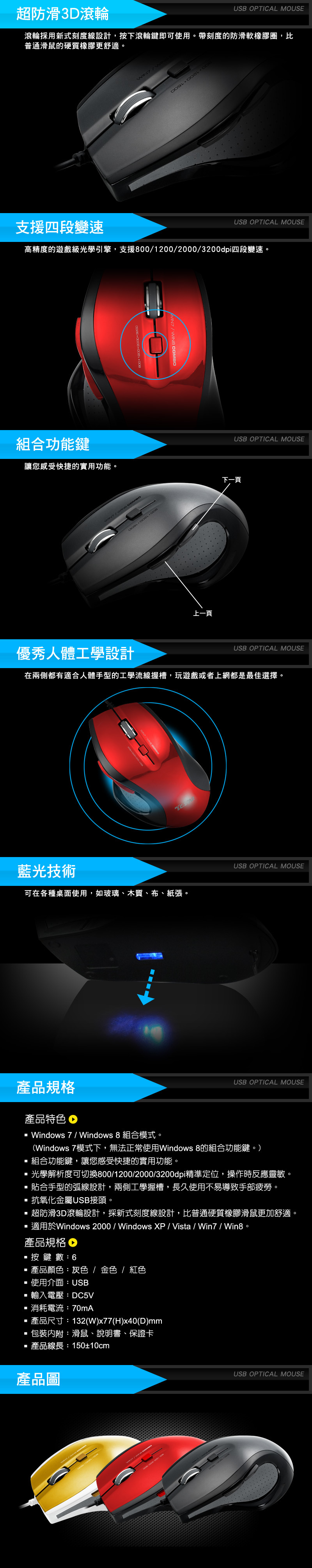 滑鼠尺寸: 132(W)x77(H)x40(D)mm