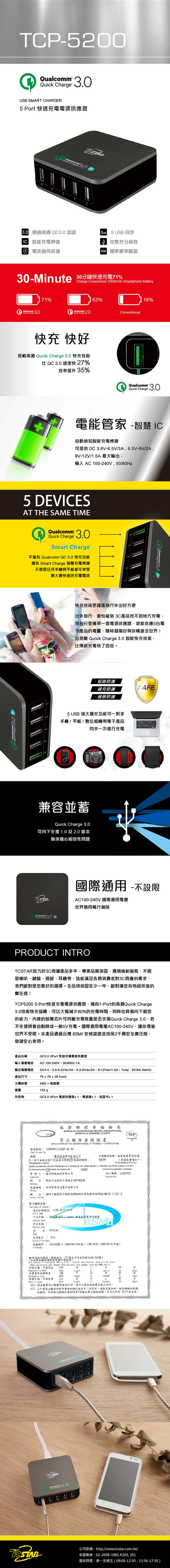 QC 3.0快充,支援5V/2A, 9V/1.2A, 12V/1A