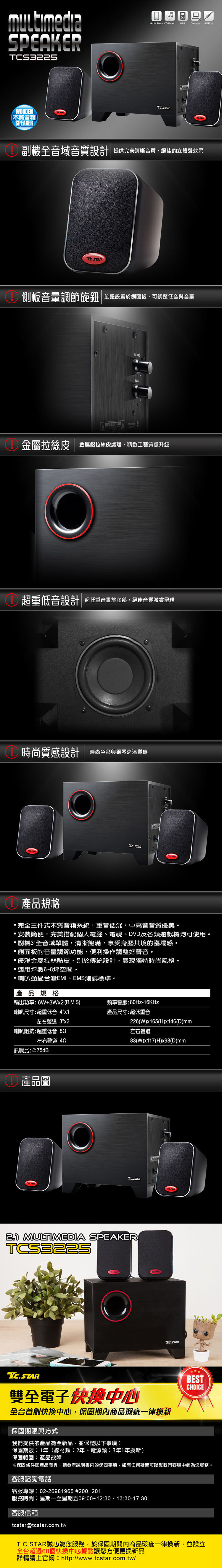 喇叭尺寸:超重低音4"x1 左右聲道3"x2