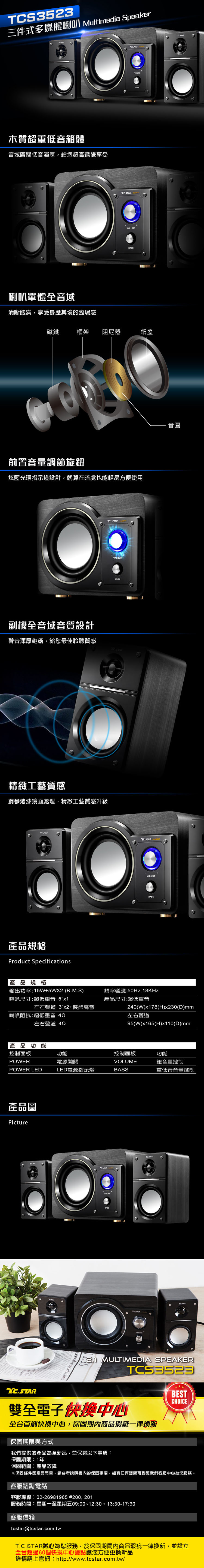 喇叭尺寸:超重低音5"x1 左右聲道3"x2+裝飾高音