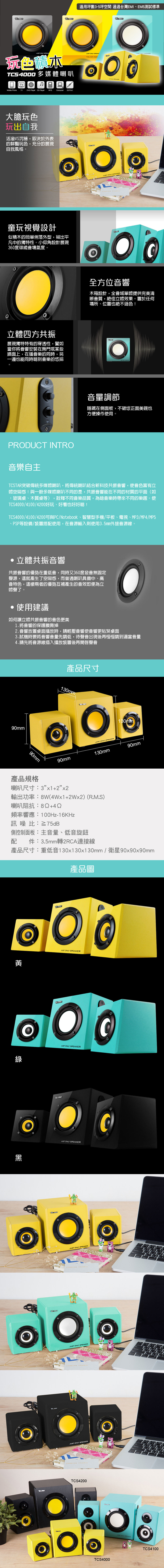 產品尺寸:重低音130x130x130mm/衛星90x90x90mm