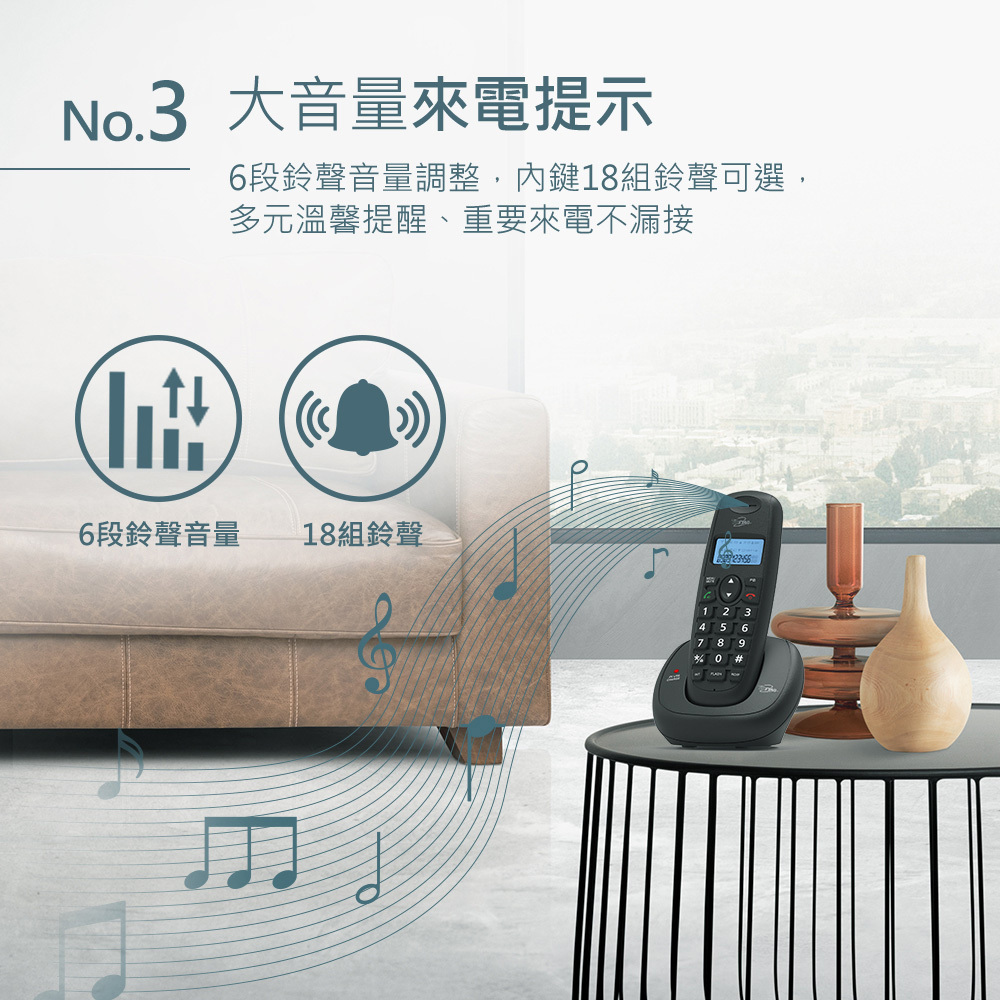 音量調節:聽筒 4段可調/鈴聲 6段可調